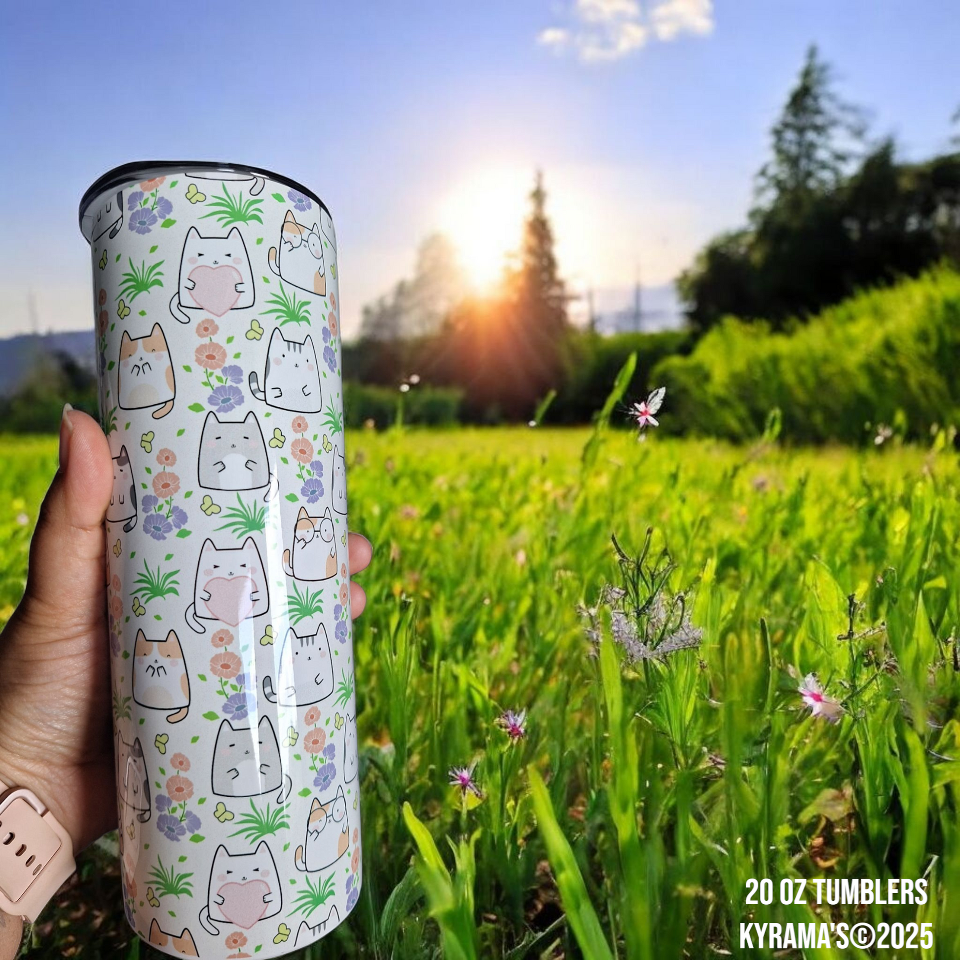 20 oz Tumbler met RVS Rietje: Tropische Katten Design